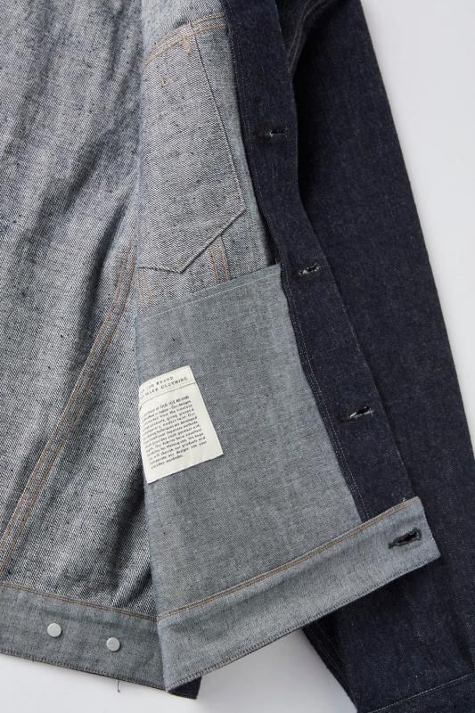 新型となるトラッカータイプのジーンジャケット。抑揚のついたポケットフラップ、美しく折り返った襟、程よくモダナイズされたフィット感、身頃脇に静かに配されたハンドウォーマーポケットなどオーセンティックな中に独自の魅力的な仕様が隠れている。