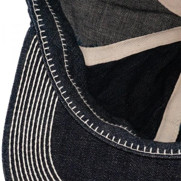 この当時の年代のキャップにはチェーンステッチ仕様のミシンが使われており、こちらのトラッカーキャップも70年代のミシンで縫製。ブリムの裏側と裏地の伏せテープ部分をチェーンステッチで縫製しているのも特徴です。