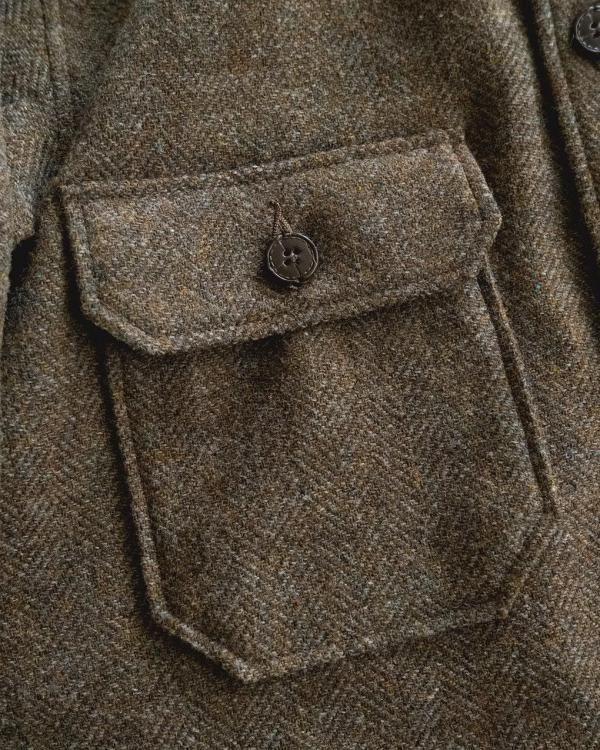 本来はジャケット用に使われるブリティッシュウール100%のヘリンボーンツイードを贅沢に使用。ミクスカラーの糸が奥行きと立体感を生み、英国らしい気品と力強さを備えた風格ある素材です。